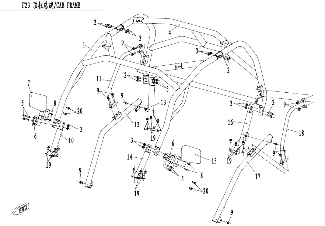 Diagram:  2017 CFMoto ZFORCE 800 Trail CF800US-A CAB FRAME (ROPS) [F23]Diagram: 2017 CFMoto ZFORCE 800 Trail CF800US-A CAB FRAME (ROPS) [F23]