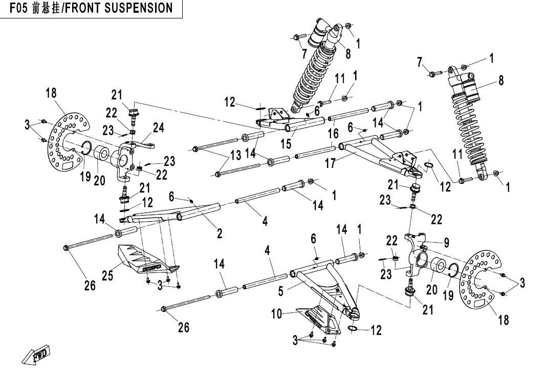 Diagram: 2017 CFMoto ZFORCE 800 Trail CF800US-A FRONT SUSPENSION [F05]