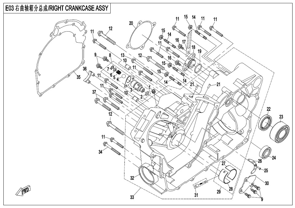 Diagram: 2017 CFMoto ZFORCE 800 Trail CF800US-A RIGHT CRANKCASE ASSY [E03]