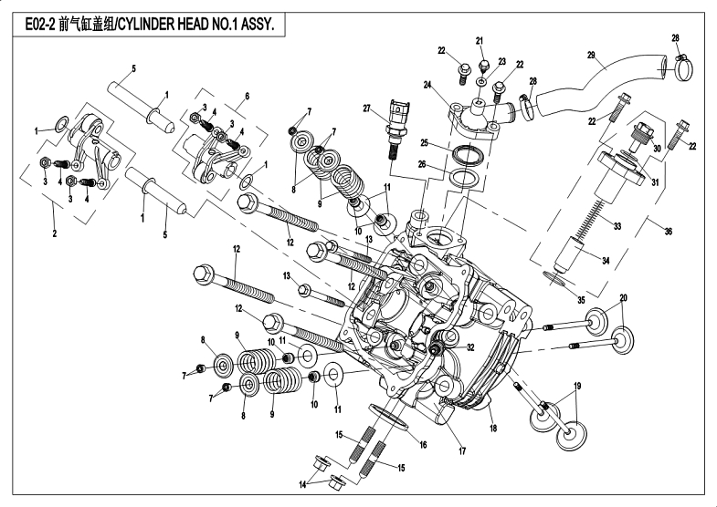 Diagram: 2018 CFMoto ZFORCE 800 Trail CF800US-A CYL HEAD NO.1 ASSY (STARTER END) [E02-2]