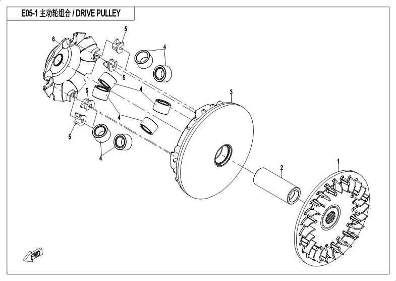 Diagram: 2018 CFMoto ZFORCE 800 Trail CF800US-A DRIVE PULLEY. [E05-1]