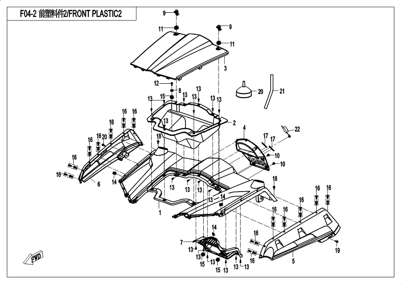 Diagram: 2018 CFMoto ZFORCE 800 Trail CF800US-A FRONT PLASTICS 2 [F04-2]