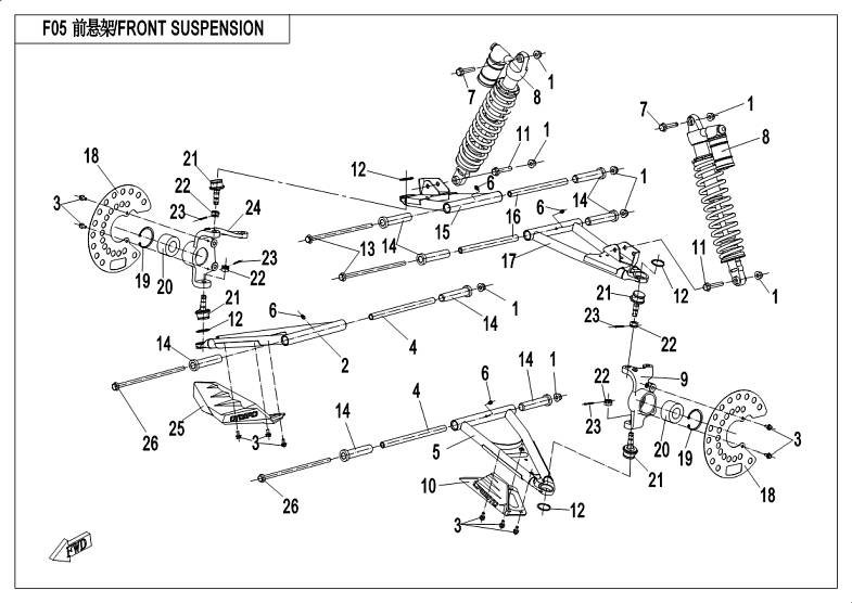Diagram: 2018 CFMoto ZFORCE 800 Trail CF800US-A FRONT SUSPENSION [F05]