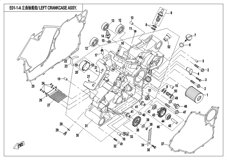 Diagram: 2018 CFMoto ZFORCE 800 Trail CF800US-A LEFT CRANKCASE ASSY.(STANDARD) [E01-1-A]