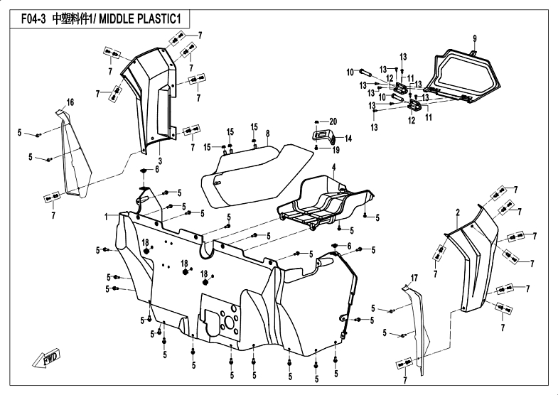 Diagram: 2018 CFMoto ZFORCE 800 Trail CF800US-A MIDDLE PLASTICS 1 [F04-3]