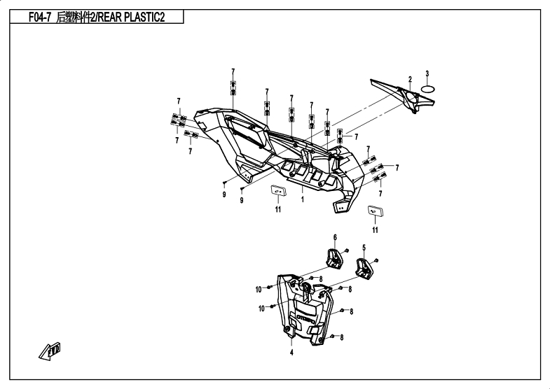 Diagram:  2018 CFMoto ZFORCE 800 Trail CF800US-A REAR PLASTICS 2 [F04-7]Diagram: 2018 CFMoto ZFORCE 800 Trail CF800US-A REAR PLASTICS 2 [F04-7]