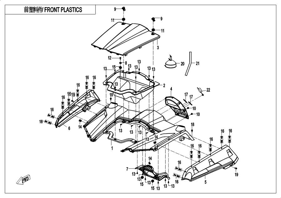 Diagram: 2019 CFMoto ZFORCE 800 Trail CF800US-A FRONT PLASTICS 2 [F04-2]