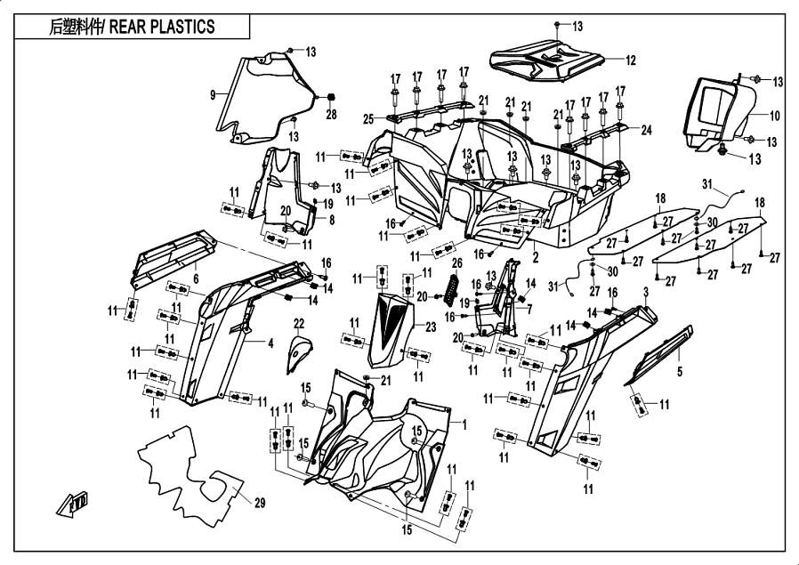 Diagram: 2019 CFMoto ZFORCE 800 Trail CF800US-A REAR PLASTICS 1 [F04-6-V2]