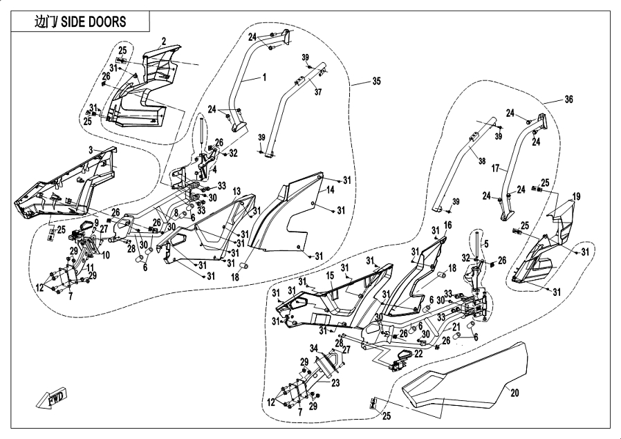 Diagram: 2019 CFMoto ZFORCE 800 Trail CF800US-A SIDE DOORS(2019) [F37]