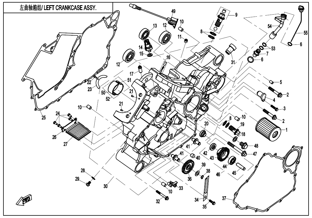 Diagram: 2020 CFMoto ZFORCE 800 Trail CF800US-A LEFT CRANKCASE ASSY. [E01-1-A-V4]