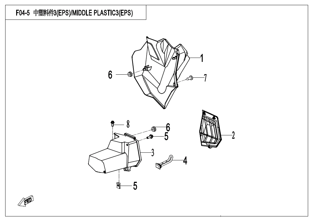 Diagram: 2020 CFMoto ZFORCE 800 Trail CF800US-A MIDDLE PLASTICS 3(EPS) [F04-5]