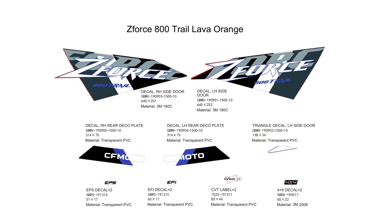 Diagram: 2022 CFMoto ZFORCE 800 Trail CF800US-A DECAL KIT (LAVA ORANGE) [F19-1-B]