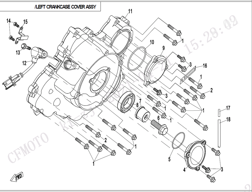 11 - LEFT CRANKCASE COVER, CFMoto OEM - 0800-014001-10000