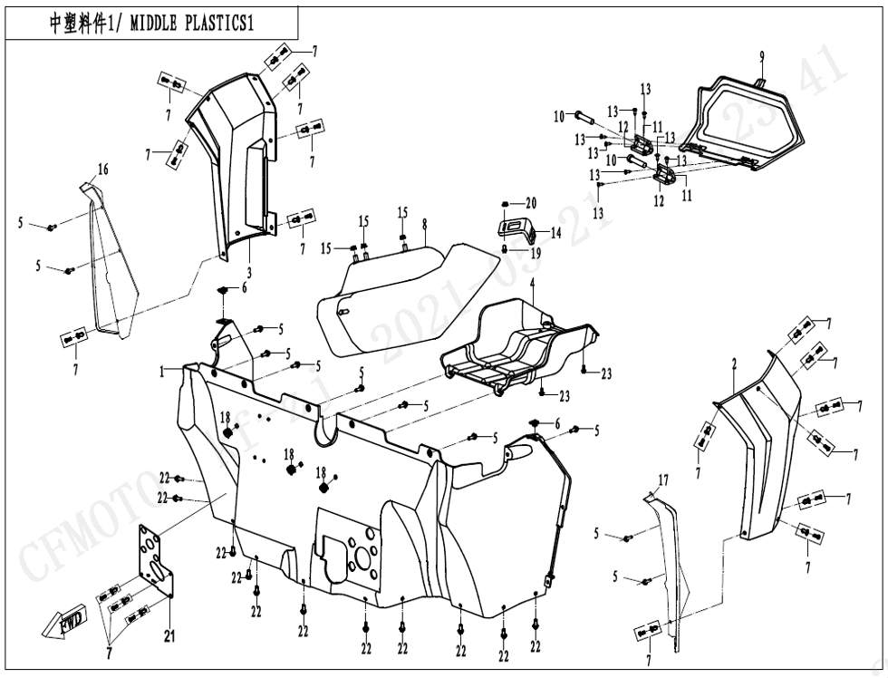 Diagram: 2022 CFMoto ZFORCE 800 Trail CF800US-A MIDDLE PLASTICS 1 [F04-3-V3]