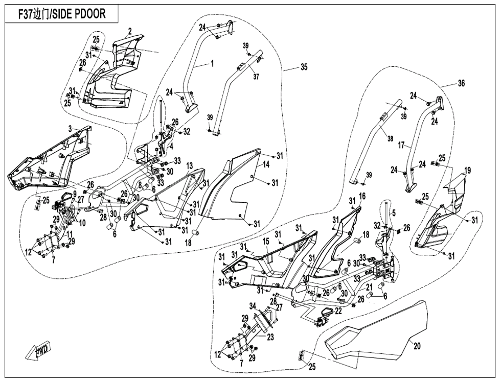 Diagram: 2022 CFMoto ZFORCE 800 Trail CF800US-A SIDE DOORS [F37-V3]